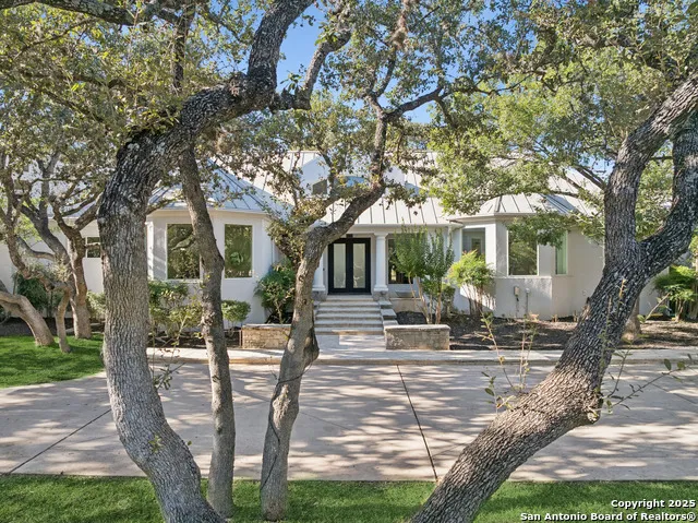 Set on a generous Shavano Park lot, this reimagined estate lives like a private modern compound. Clean lines, warm surfaces, and wide windows create an almost gallery-like calm, the kind of quiet luxury you notice before you name it. Inside, the scale becomes unmistakable. More than 6700 square feet of expansive living unfold through tall ceilings, expansive living areas, and a crisp palette that keeps every room feeling bright and composed. The renovation touches everything. Fixtures, finishes, and lighting move with a consistent elevated language. The kitchen sits at the center of the plan and reads as a true showpiece with sweeping Taj Mahal quartzite, Thermador appliances, and generous proportions that support both daily living and larger gatherings. Private spaces carry the same refined tone. The primary suite enjoys its own corner of the home with a quiet sitting area and direct access to poolside bliss. Outdoors, the new pool and spa sit beneath mature oaks and connect seamlessly to the interior living spaces. The result is a serene, resortlike environment that reinforces the sense of privacy created by the nearly acre sized lot. .93 acre Bed Bath 6710 Sqft. Formal dining Private study Game room Pool + Spa 3 car oversized garage with private gated access
